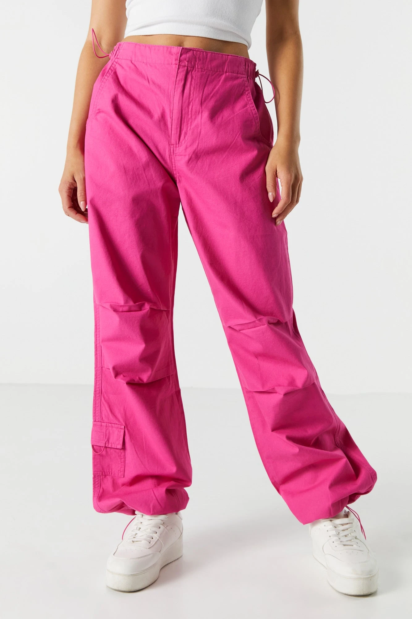 This cargo parachute pant is the ultimate vibe for the new season. This pant features cargo pockets, side pockets, elastic bungee waist, and cinched bungee ankles. Size runs small.