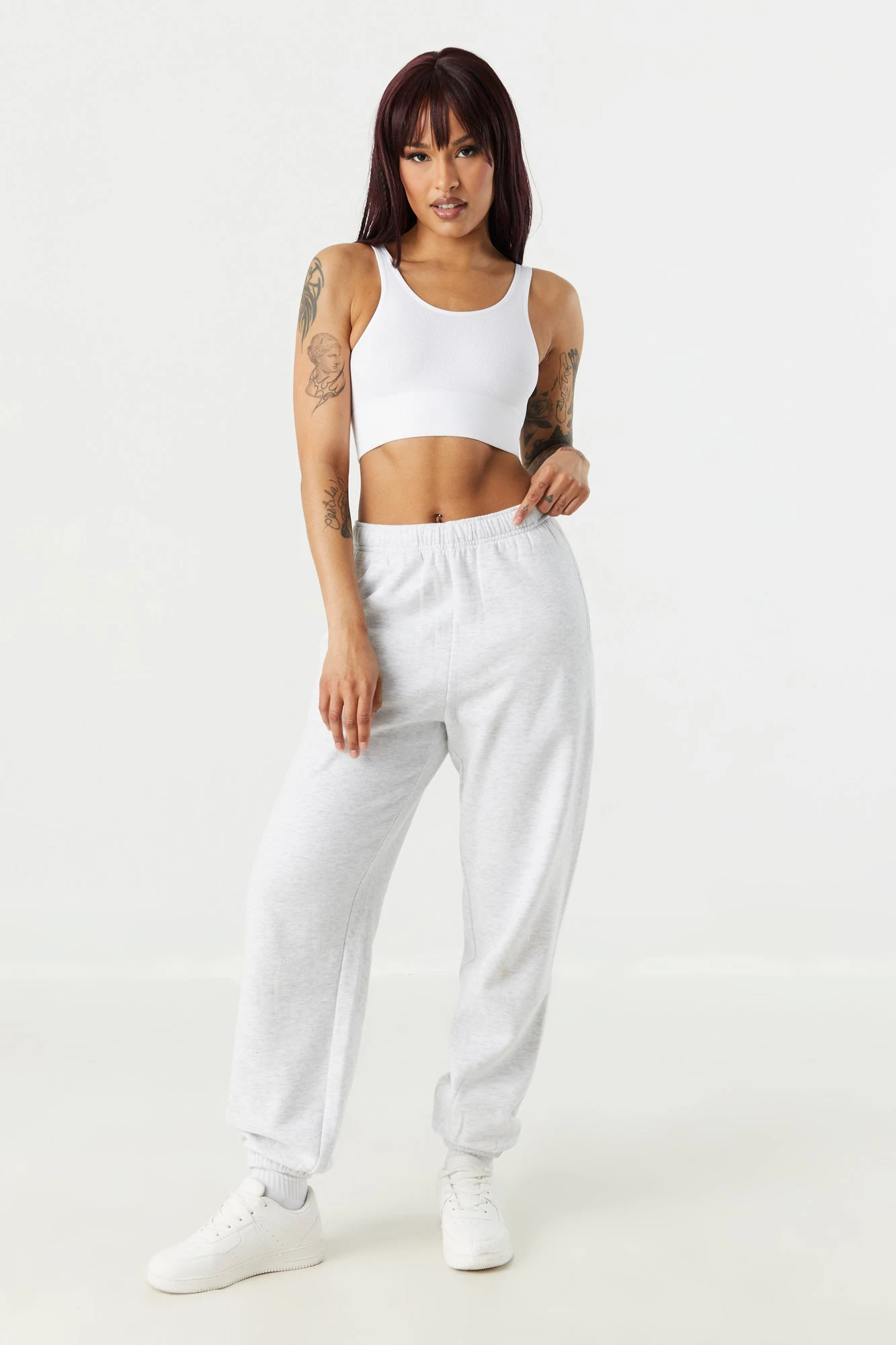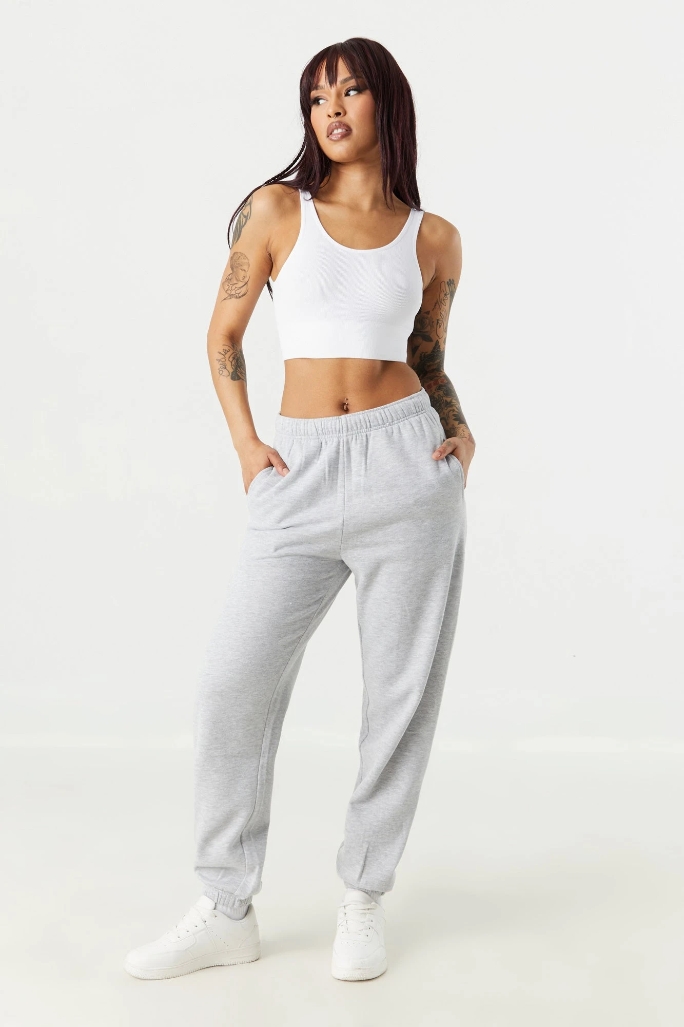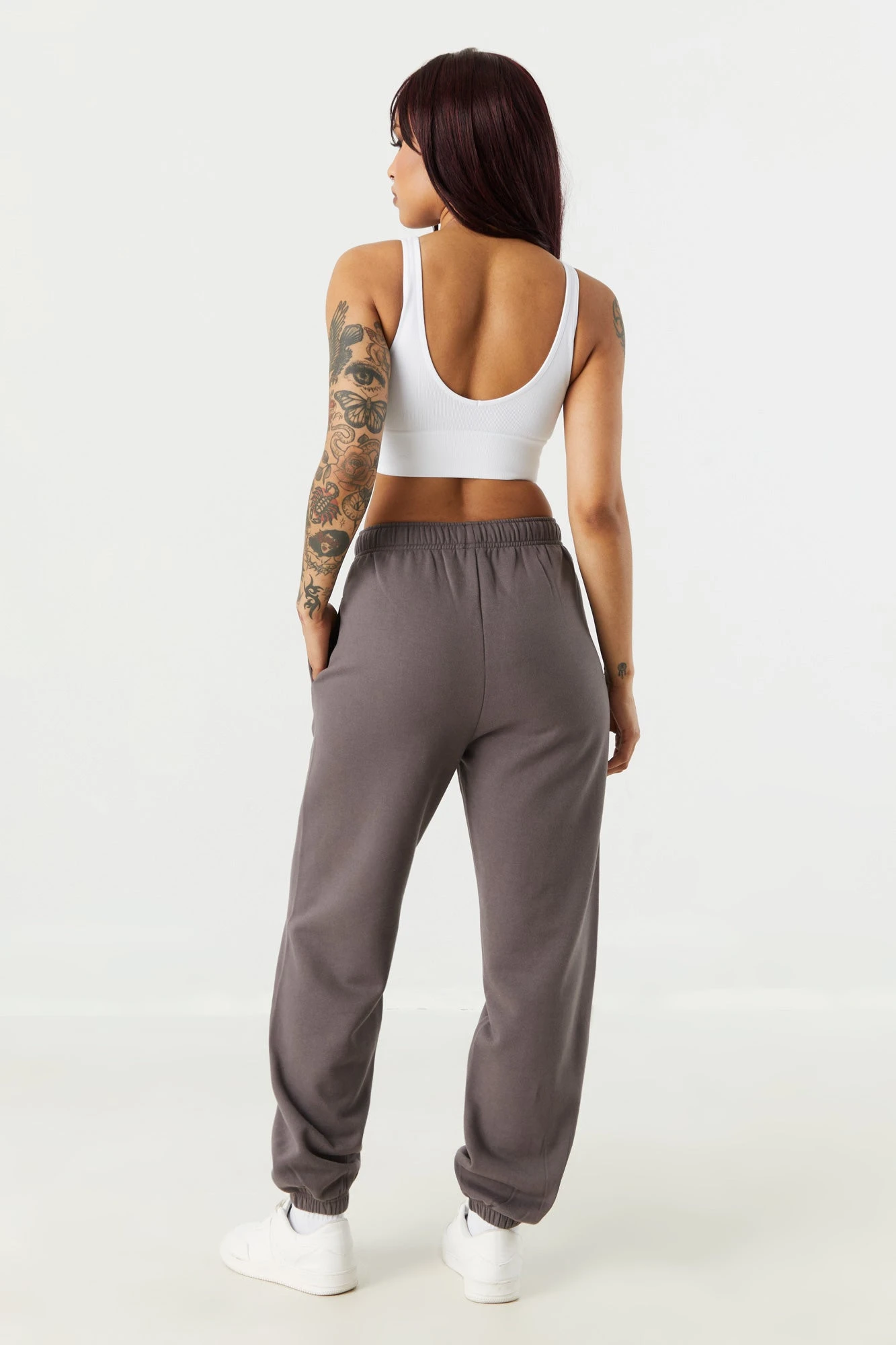 Treat yourself to comfort with these fleece joggers that are the perfect addition to your off duty days. This jogger features fleece material, high-rise elastic waist, slide-in pockets, and cinched ankles. Size runs small.
