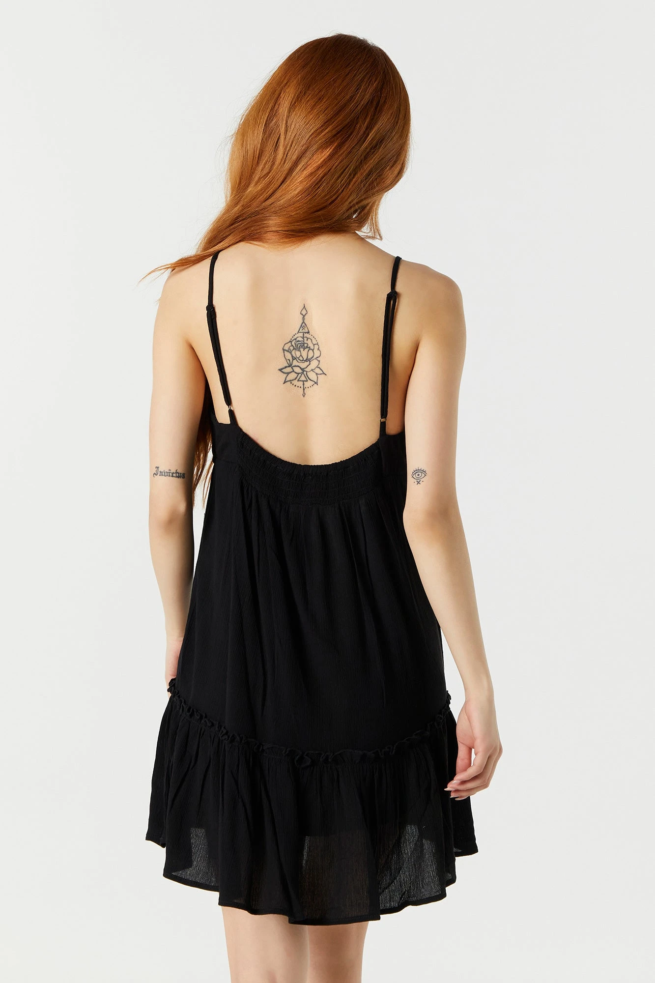 Get the sought-after boho look this season with our tiered babydoll dress. This dress features surplice neckline, tiering, babydoll fit, adjustable straps, and mini length. Size runs small.