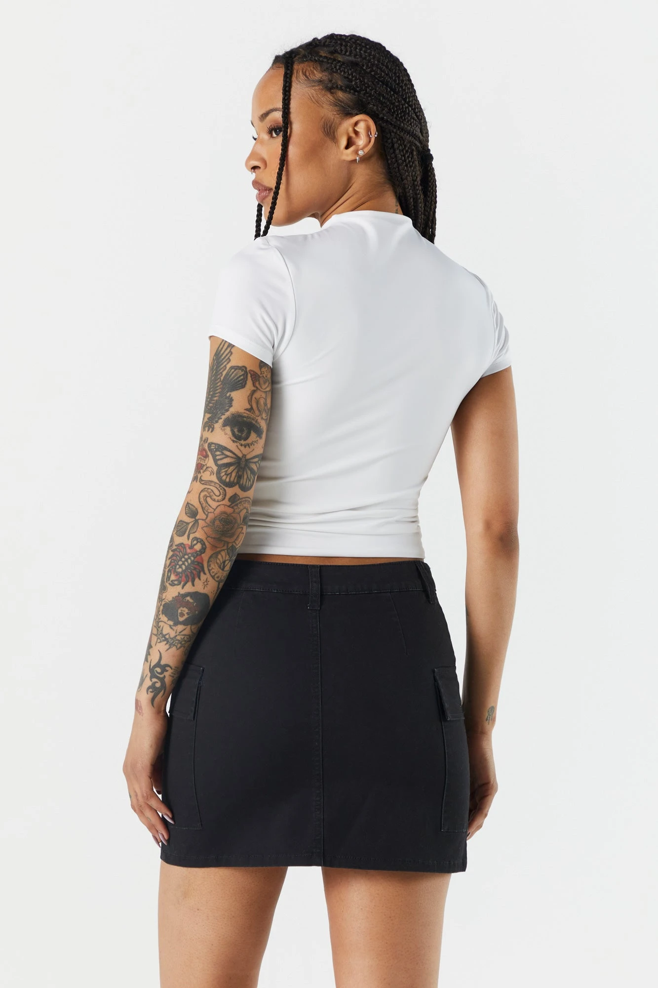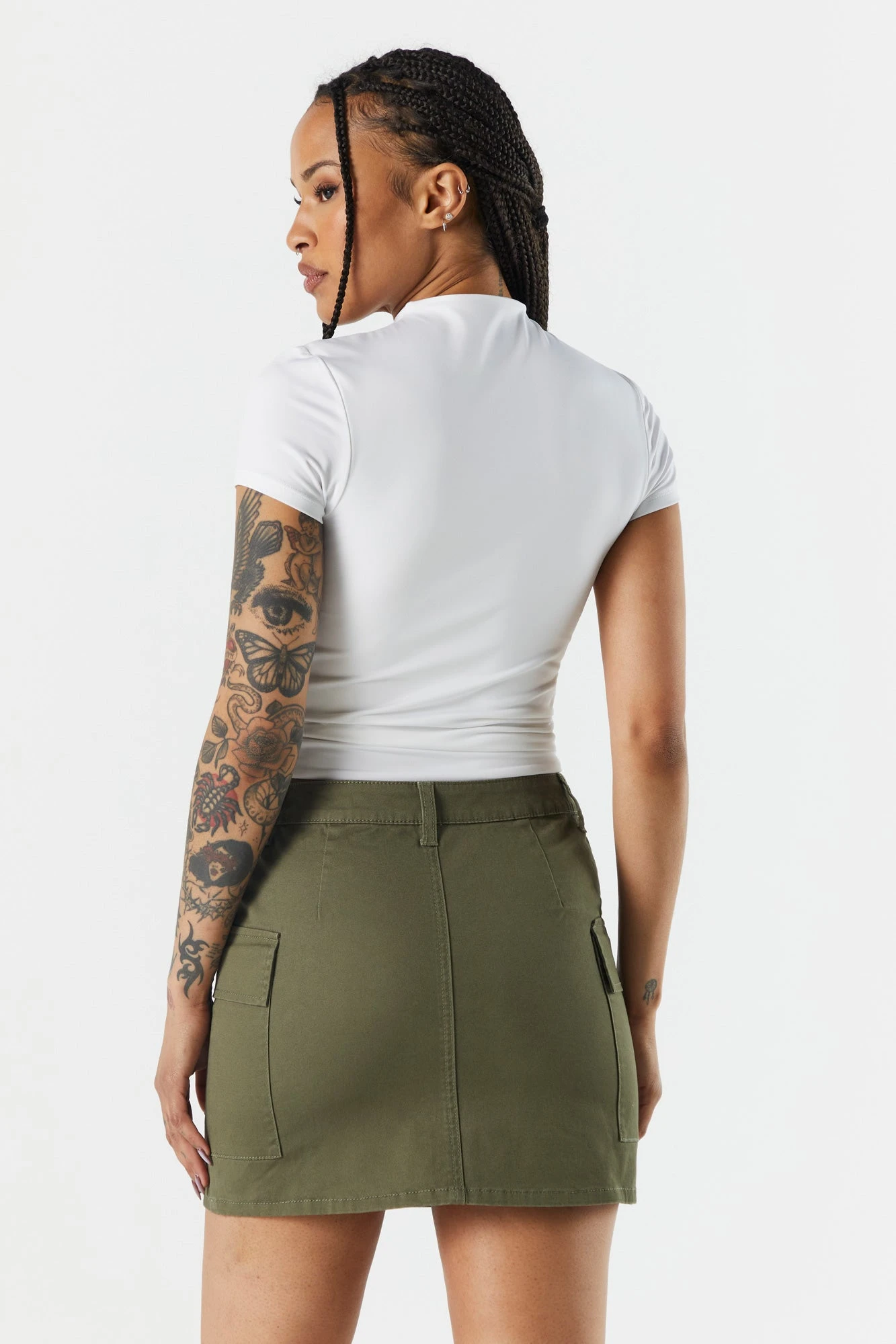 Urban vibes only! Your ticket to effortless summer style is here. This skirt features Poplin material, double button closure, belt loops, cargo pockets, and mini length. Size runs small.