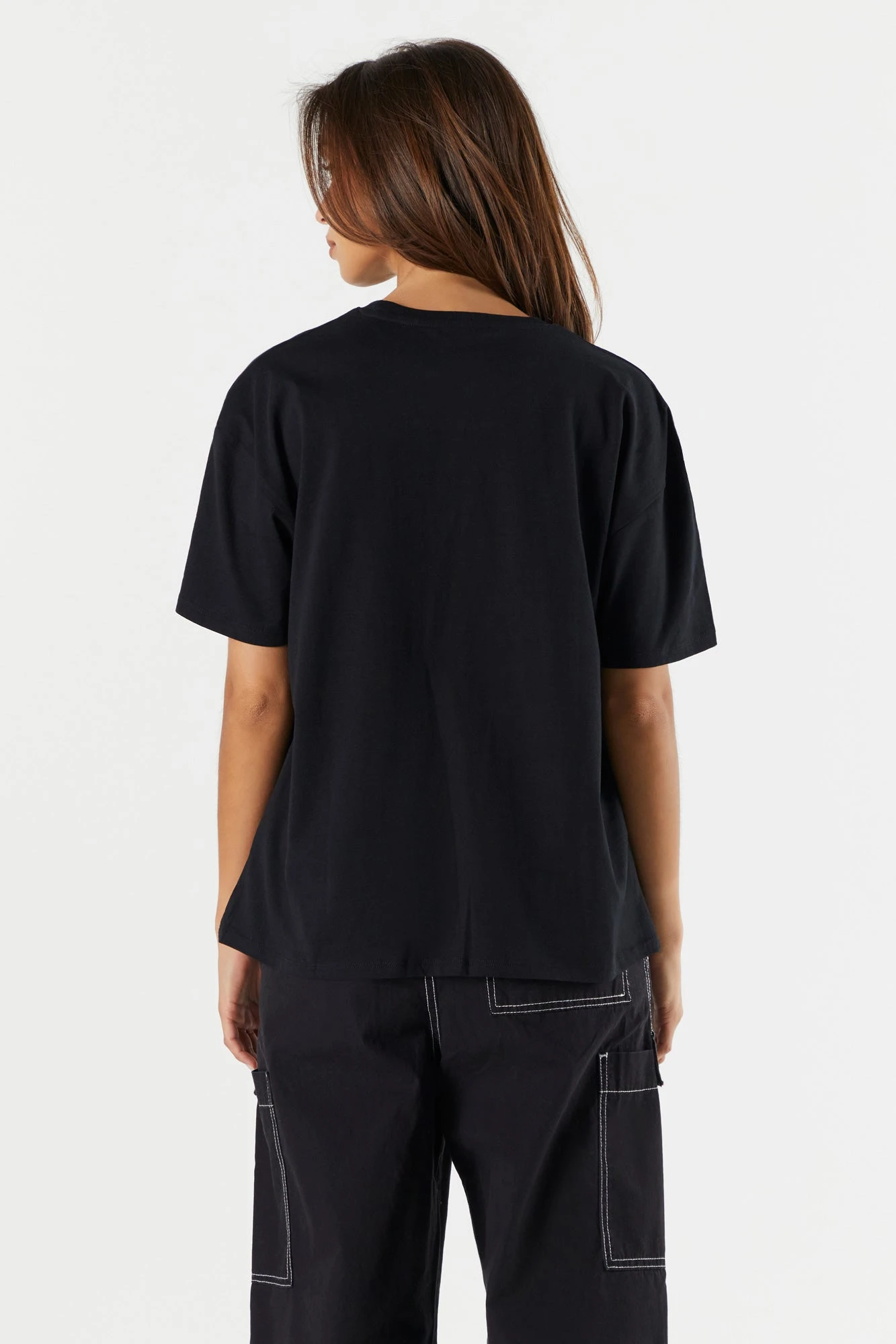 Embrace your individuality with our iconic collection of graphic tees! This top features front graphic, short sleeves, crew neckline, and boyfriend fit.